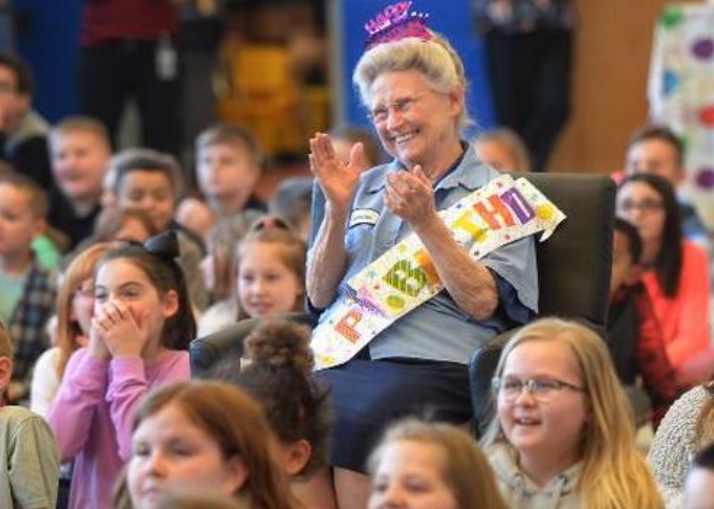 En dag kallades “Miss Frances” över högtalarna till skolans kafeteria, under föreställningen att hon behövdes för att städa efter ett pågående samlingsmöte. Men när hon klev in i rummet möttes hon av ett rungande “överraskning!” från över 200 elever. Det var hennes 77-årsdag – en storslagen stund som blev ännu mer speciell eftersom Frances, otroligt nog, aldrig tidigare hade haft ett födelsedagsfirande i sitt liv.