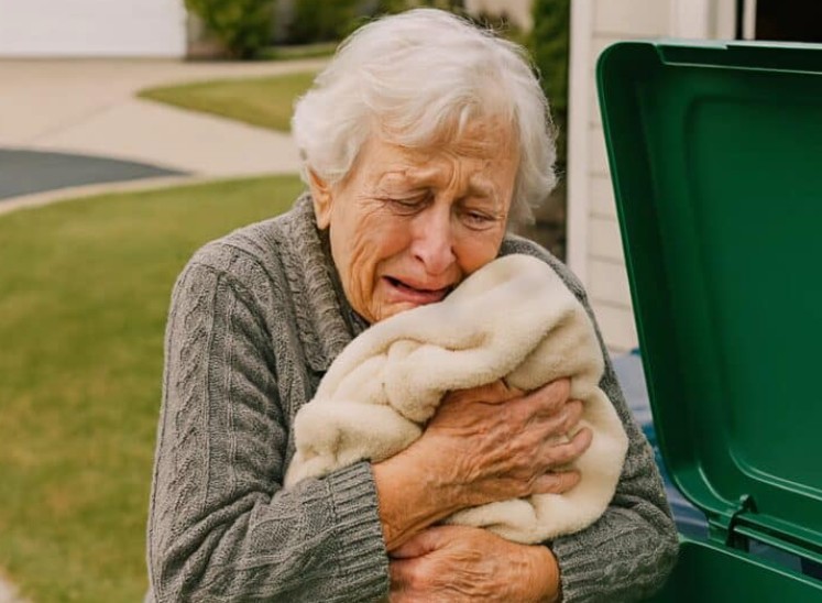 Jag såg av en slump min svärdotter slänga den babyfilt jag själv hade stickat till mitt barn; jag kastade mig genast mot sopcontainern och tog tillbaka filten – och i samma ögonblick kände jag något hårt gömt inne i tyget.