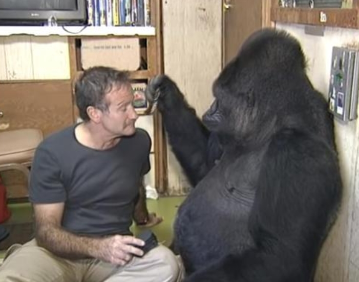 Gorillafonden, som då oroade sig för Kokos nedstämdhet efter att hennes bästa vän Michael gått bort, kontaktade Robin i hopp om att han kunde muntra upp henne. Williams, känd för sin värme och sitt stora hjärta, tackade ja till mötet. Kort därefter berättade han för Today-programmet att deras stund tillsammans var något alldeles särskilt: “Vi delade något extraordinärt – skratt.” Han var fascinerad av hur Koko inte bara förstod talad engelska, utan också kunde uttrycka sig genom över 1 000 tecken. Mötet beskrev han som “fantastiskt och oförglömligt.”