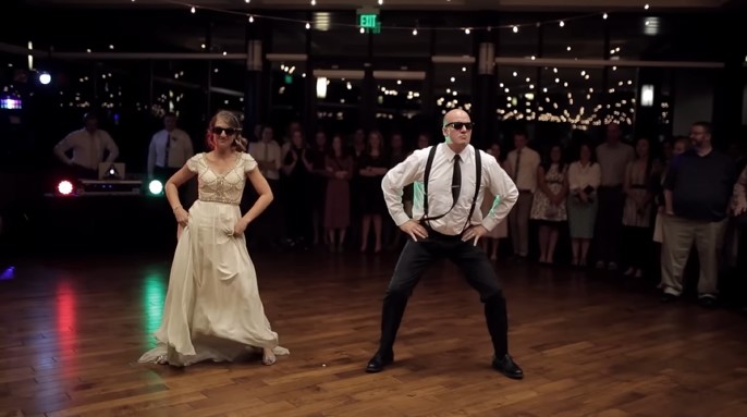 Till en början genomförde de den klassiska far-dotter-dansen, men vänta lite, och se vad som hände därefter! Plötsligt ändrades musiken, pappa och dotter satte på sig solglasögon, och den riktiga showen började! Mannen var på glöd! Detta duo imponerade alla med sin positivitet och energi. Jag tror att detta är mycket coolare än de traditionella sentimentala danserna.