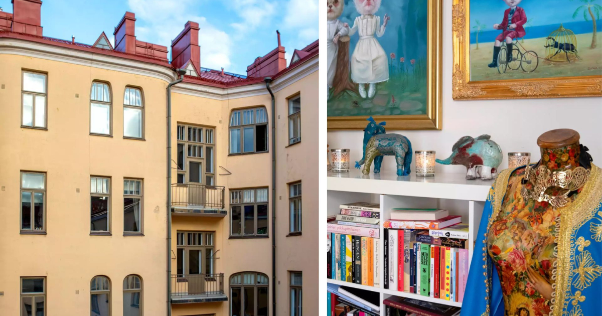Ett livfullt och eklektiskt inredningsdesign kännetecknar Corinnas lägenhet, en 50-årig Helsingforsbo. Belägen i en