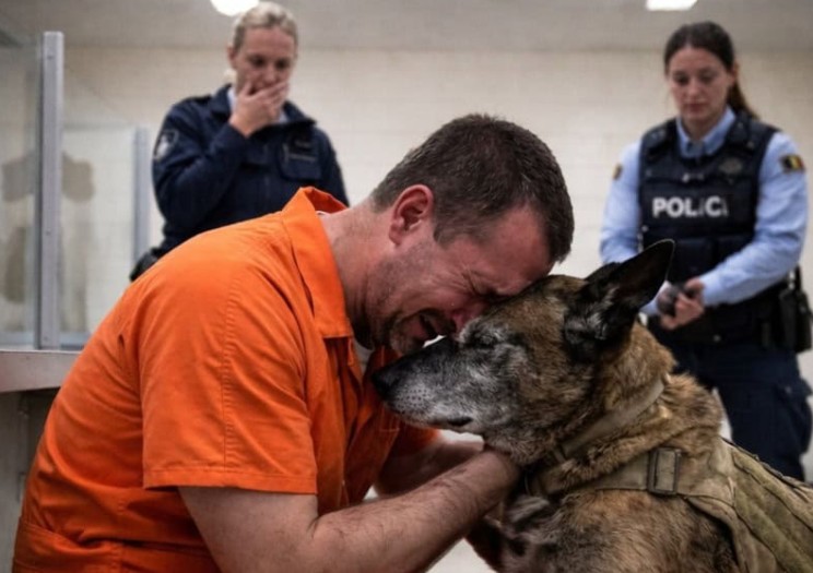Den äldre belgiska malinois-hunden, med blekt ansikte och långsamma steg, närmade sig sin ägare. Ethan började gråta okontrollerat när han med sina handfängsel strök hundens päls. För honom, som redan hade övergetts av sin familj och sina vänner, var hunden det sista beviset på ovillkorlig kärlek som fortfarande fanns kvar i hans liv. Alla i rummet väntade tyst på att detta sorgliga avsked skulle ta slut.