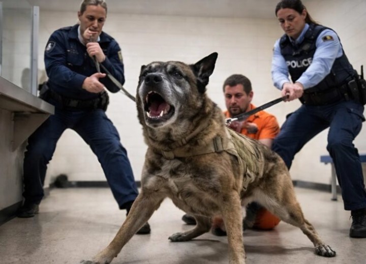 Personalen tvingades backa; hundens lojalitet gick till och med före vapen och order. När de försökte dra bort djuret kämpade det för att inte släppa sin ägare, även när tassarna gled mot golvet. I det ögonblicket var det som ekade i korridorerna inte bara ett djurs skall, utan ett uppror av trohet och en orubblig bindning.