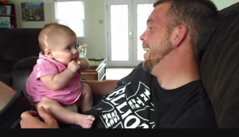 Även vid den ömma åldern av 2 månader kan en liten flicka känna en stor kärlek till sin pappa. När hennes far uttrycker sin kärlek, återgäldar hon den på sitt eget sätt, även om hon kanske ännu inte kan sätta ord på det. Sådana stunder understryker kärlekens otroliga styrka. Om denna berättelse berörde ditt hjärta, dela gärna med dig av den till andra!