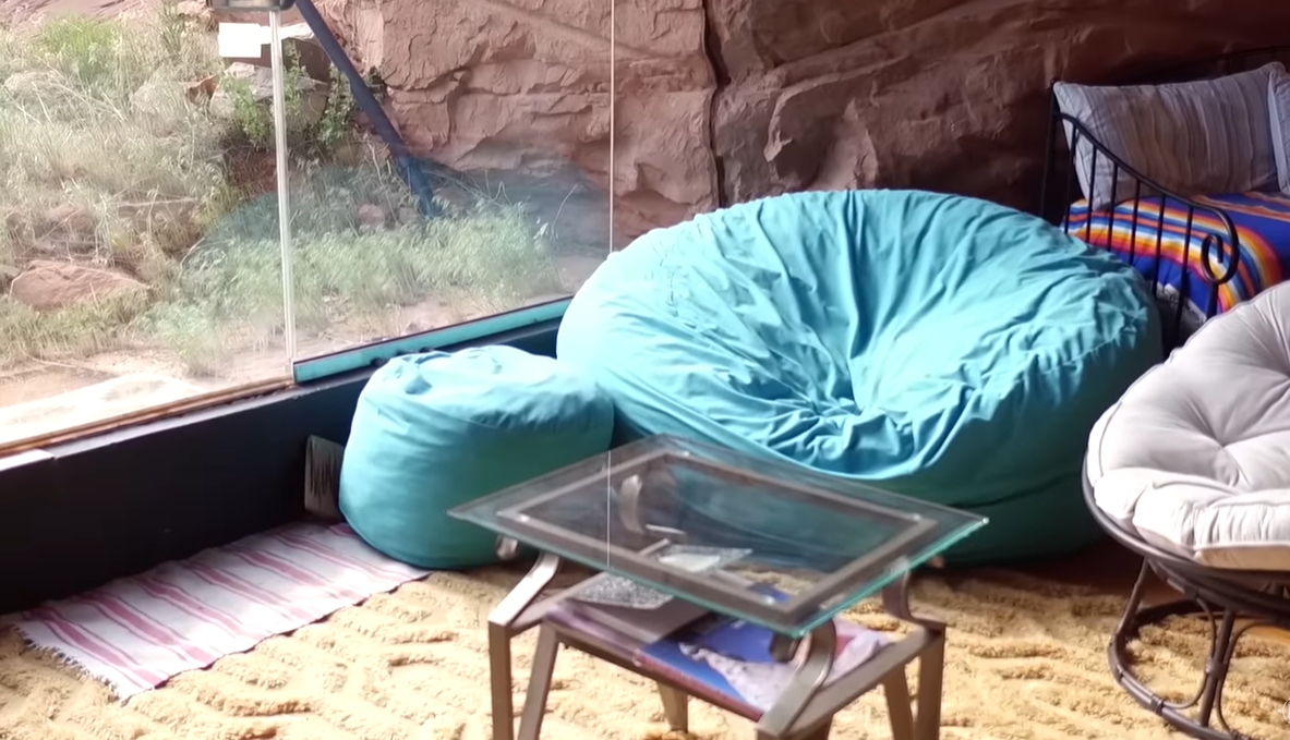 Johnson’s erfarenheter som gruvarbetare under sina universitetsår visade sig ovärderliga för detta okonventionella byggprojekt. Till en början bodde han i en husvagn på fastigheten utan elektricitet eller rinnande vatten i 25 år, vilket fördjupade hans relation med vildmarken, han odlade sin egen mat och levde ett verkligen avskilt liv. Medan hans ursprungliga vision var att bygga en enkel kanjonbostad, ledde insikten om att han kunde skära in i berggrunden honom till att ta på sig det monumentala uppdraget att skapa ett grotthem, även om det initialt verkade ekonomiskt omöjligt.