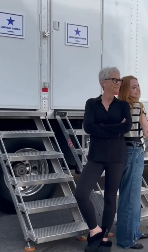När Curtis klev ut ur sin trailer på inspelningsplatsen för Freaky Friday 2 var hon nästintill oigenkännlig med sitt längre hår. Paparazzibilder fångade henne i en helsvart outfit – mjuk kofta, höga byxor och ett avslappnat självförtroende.