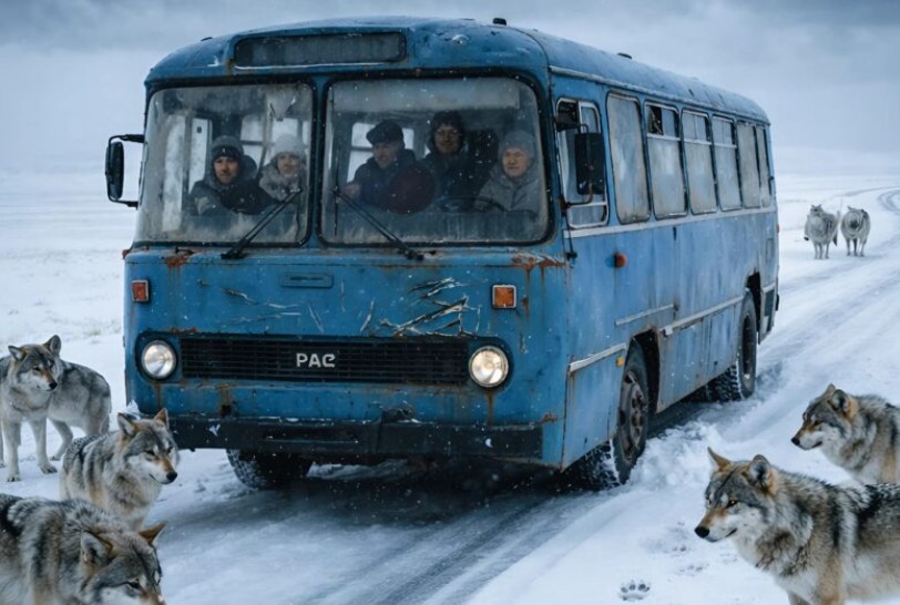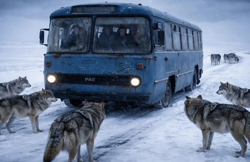 Från snödrivans slöja steg först en, sedan fem, och till slut dussintals grå siluetter upp på vägen. Det var inte hundar – det var en enorm vargflock. När bussen stannade grep en isande rädsla tag i alla ombord; de vilda djuren hade tyst omringat bussen, och de väntade bara.