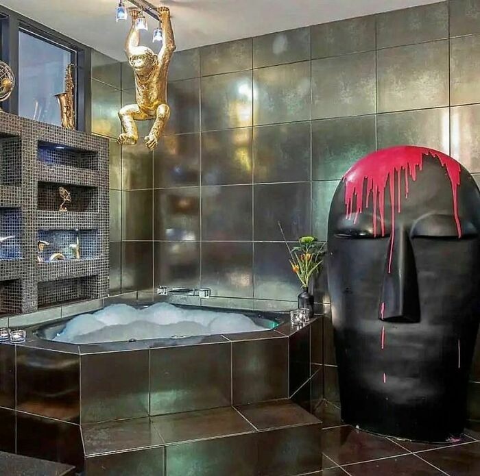 Vad är en badkar utan ett gigantiskt ansikte och en apa på toppen?