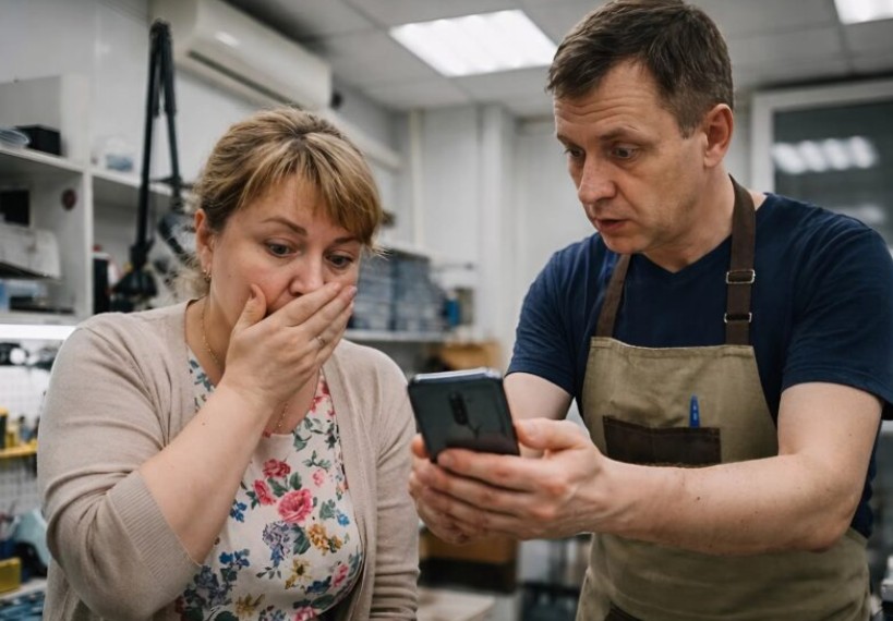 Den enkla reparatören sade att det skulle ta ungefär en timme. Jag satte mig i ett hörn och började vänta, medan jag betraktade regnet utanför och mindes de lyckliga stunderna med min man, hur han var en trofast familjefar. Barnen såg på honom som en hjälte. När reparatören satte in den nya skärmen och kopplade in telefonen hördes det bekanta uppstartsljudet. Men så fort enheten startade blev hans ansikte kritvitt, och med darrande händer räckte han telefonen mot mig.