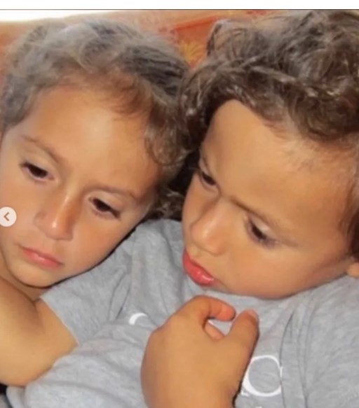 Tillsammans med en aktuell bild delar “Let’s Get Loud”-sångerskan också ett barndomsfoto på tvillingarna, båda med vågigt hår, blickande bort från kameran.