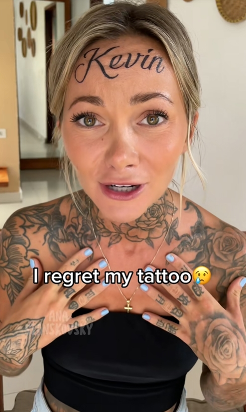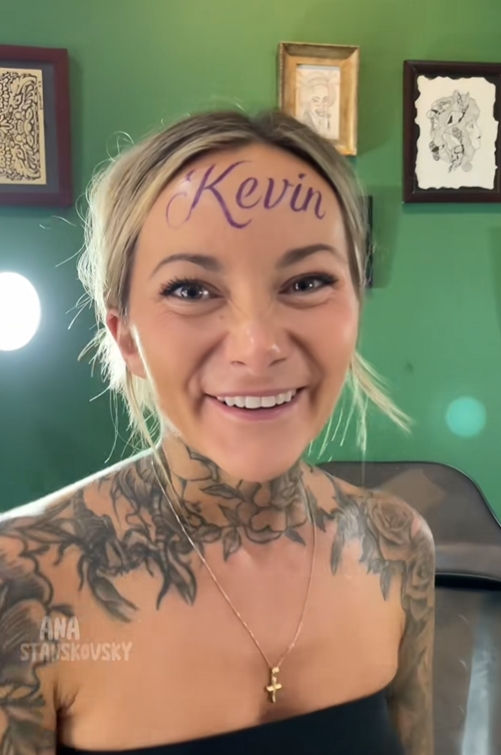 Ana Stanskovsky, en polskfödd influencer och tatueringsentusiast med över 588 000 följare på TikTok, har skapat stor uppståndelse på nätet efter att ha tatuerat sin pojkvän Kevins namn med stora, svarta, kursiva bokstäver över pannan. I den virala videon med titeln “my new face tattoo”, som delades den 6 november, syns Ana grimasera av smärta när tatueraren permanent ristar in “Kevin” i hennes panna. När tatueringen är klar ler hon stort och utbrister:
