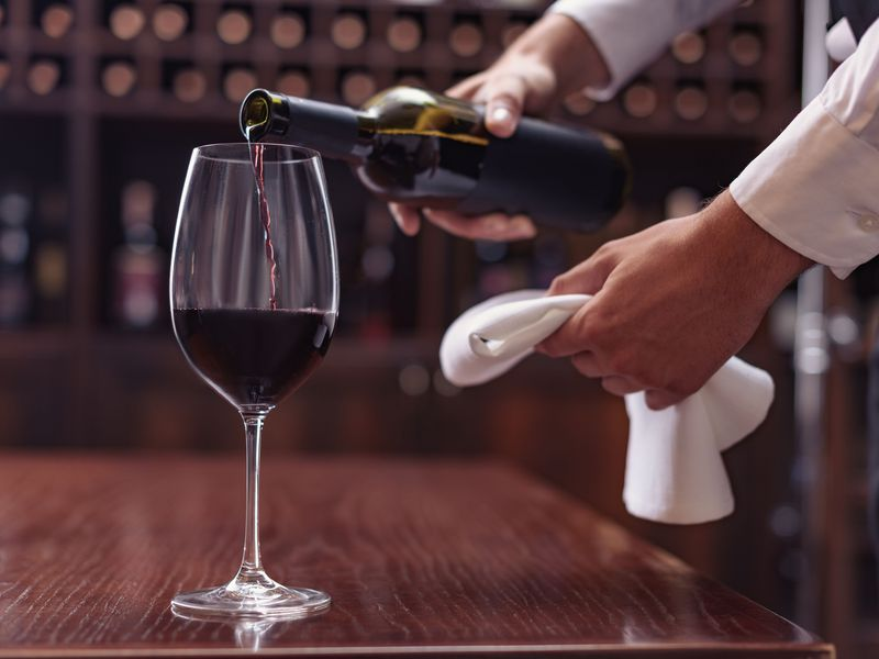 Erik började hälla upp… tills han plötsligt lutade flaskan för mycket. Vinet rann ner över min klänning.