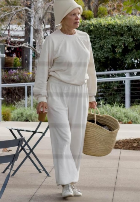 Malibu på vintern har en särskild, mjölkig mjukhet, en tid då Stilla havets dimma suddar ut gränsen mellan sand och himmel. I detta tysta ljus dök Pamela Anderson upp för en kaffeutflykt, svept i en cremefärgad träningsdräkt med en stråväska över axeln. Hon såg ut som en kvinna som äntligen stämplat ut efter ett trettioårigt skift. Hennes fräscha ansikte var inte ett ”utseende” för en kampanj; det var ett tillstånd av nåd – uniformen av en kvinna som slutat prestera och börjat andas.